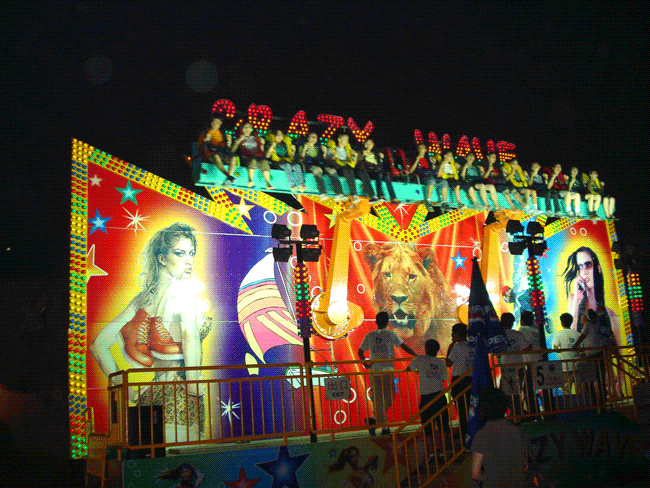 星际巴士。又有单臂飞毯、洗衣机、疯狂浪潮等名。是我公司继换代型火箭蹦极产品后,为广大客户及乘客倾情奉献的又一新、奇、特游乐设施。采用微电脑编程控制和大扭矩液压马达匹配技术及当前国际流行、国内领先的无基础式结构,运输、安装方便,异地经营便捷;在运行中,乘客随旋转方向和运动速度的急剧变化,结合流光溢彩的外观装饰和声、光、电的配合,达到惊险、欢乐、刺激、梦幻的独特游乐效果,让乘客零距离充分感受这一旋风般的无限魅力。该设备将以最小的运行成本,获得最大的经济效益。